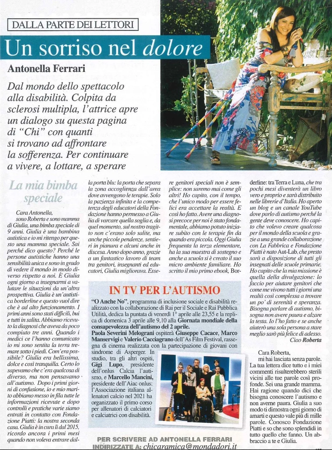 Cara Antonella, sono Roberta e sono mamma di Giulia, una bimba speciale di 9 anni. Giulia è una bambina autistica e io mi ritengo per questo una mamma speciale.
