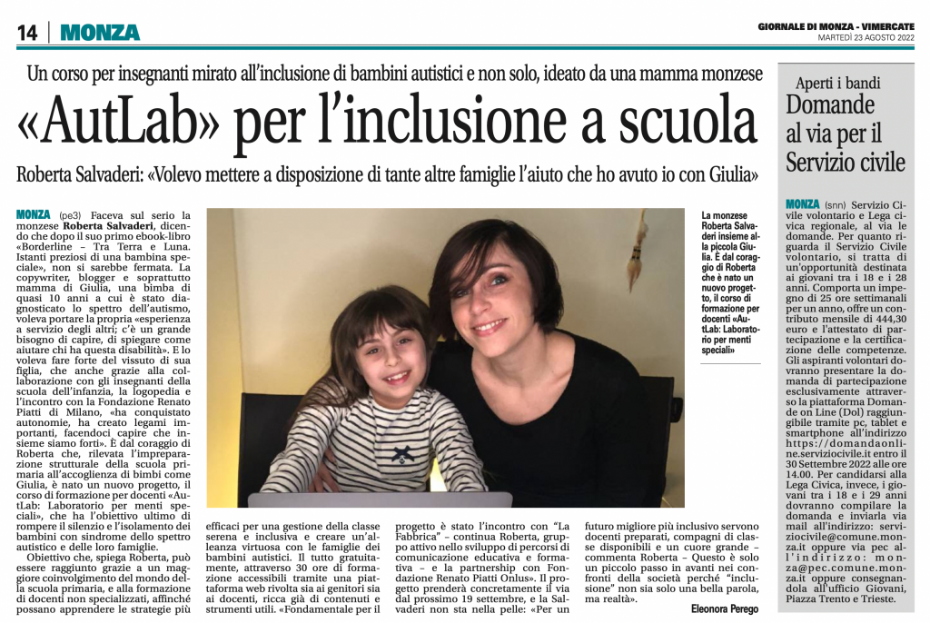 “Era nato nel 2020 come blog di divulgazione sui temi dell’autismo. Ora Tra Terra e Luna diventa una Fondazione, che verrà pubblicamente presentata il 3 ottobre a Monza”...